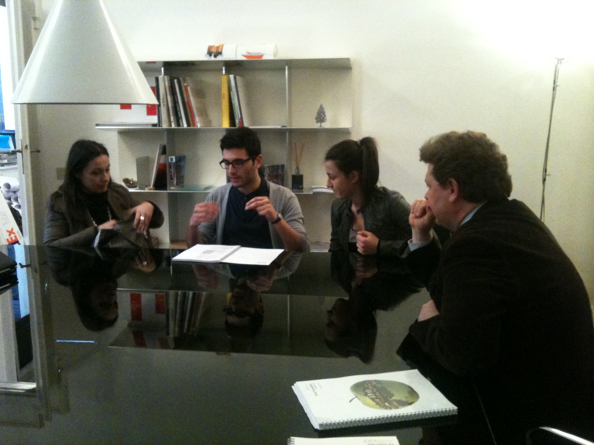 Some students of the course have the opportunity to explain thier design to Carlotta Montebello, coordinator of Fondazione Pomodoro, to discuss with her the strategy they developed for the new interiors.