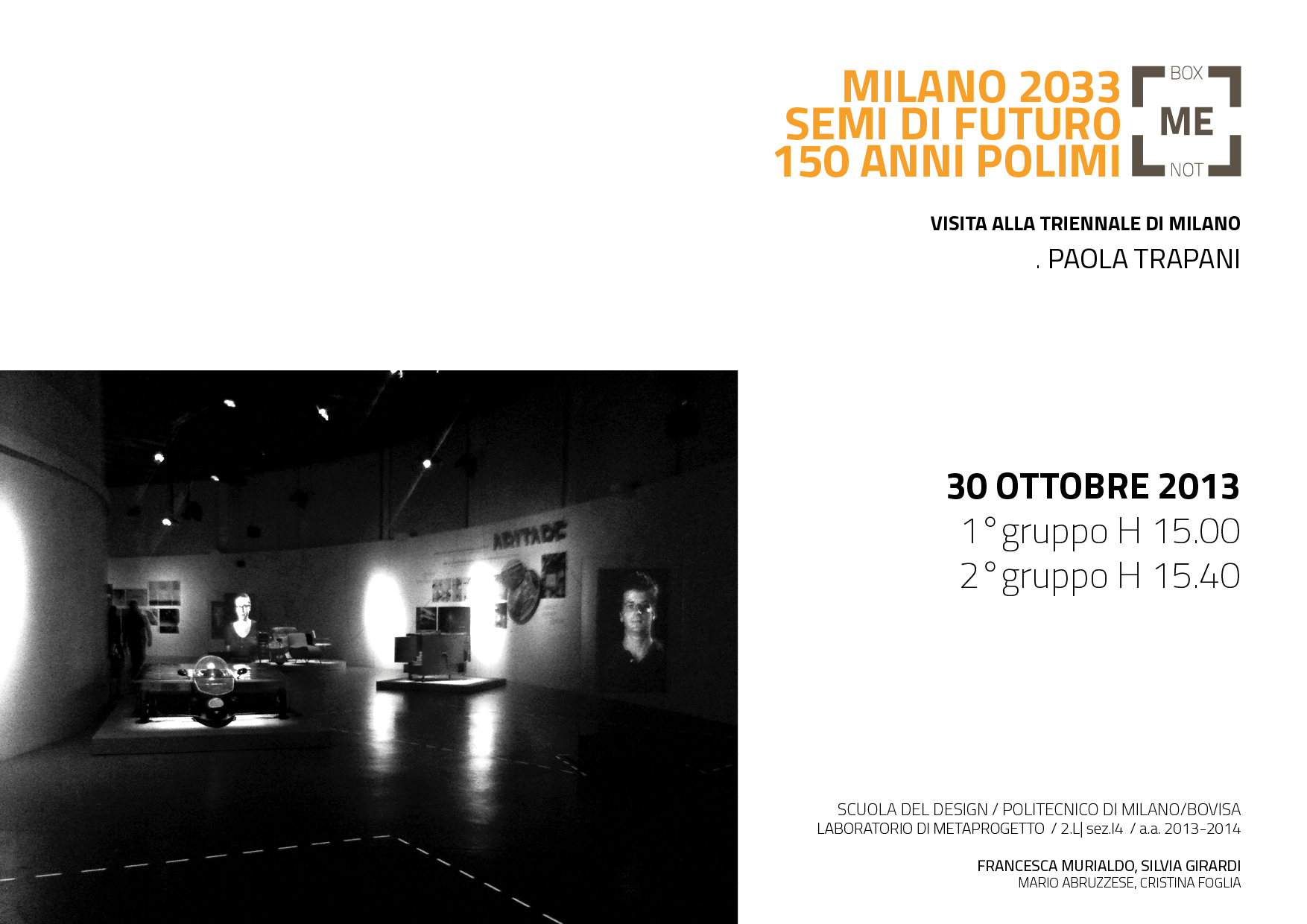 Wednesday, 30th October at 3 p.m. there will be a visit to the exhibition “MILANO 2033 – SEMI DI FUTURO 150 ANNI POLIMI”